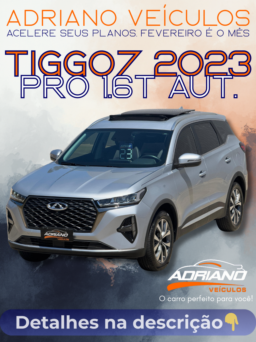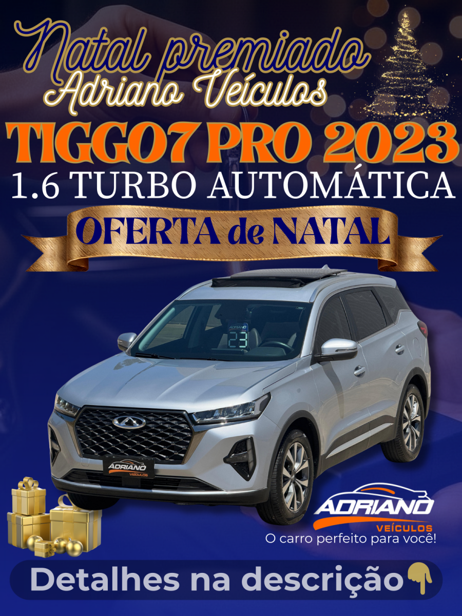 APENAS 47 MIL KM + REVISÕES EM CONCESSIONÁRIA + TETO SOLAR PANORÂMICO! O Tiggo 7 Pro 1.6 Turbo Automático 2023 é a escolha perfeita para quem busca uma SUV com design arrojado, alta performance e um nível de equipamentos surpreendente. Com baixíssima quilometragem e todas as revisões em concessionária, oferece o máximo em conforto, segurança e inovação. Ideal para quem não abre mão de sofisticação e tecnologia de ponta. *Apenas 47 mil km rodados *Revisões em concessionária * Completíssima * Multimídia com câmera de ré 360° * Teto solar panorâmico * Chave de presença * Rodas de liga leve * Airbags duplo e laterais Financiamento facilitado Entre em contato e venha conhecer esta SUV premium! Sua chance de ter um Tiggo 7 Pro com garantia de procedência e repleto de luxo!