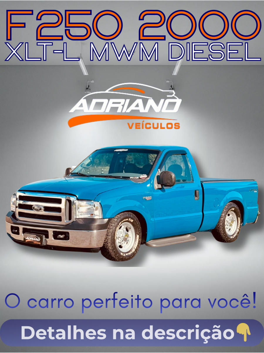 F-250 XLT-L 4.2 MWM Diesel 2000 – Exclusividade, potência e estilo em um só projeto! Essa F-250 é para quem busca muito mais do que uma caminhonete: um projeto único, feito com qualidade e investimento em cada detalhe. Reestilizada com a frente do modelo novo, suspensão rebaixada e tudo legalizado, entrega presença marcante e confiabilidade. Em janeiro de 2025 passou pela Tijucar – oficina especializada, onde recebeu: Pintura de cofre e motor completa Kit 100 CV Tijucar Suspensão Tijucar Cabeçote revisado com junta de metal Reservatório de água, cano de descarga e intake em inox Radiador e embreagem novos Pneus XBRI novos Além disso, é completa com ar-condicionado gelando, multimídia com dois módulos de som, bateria auxiliar, fonte para carregamento e som na caçamba. Estribos originais mantidos. Uma F-250 diferenciada, pronta para quem busca exclusividade, potência e conforto em um só veículo. Entre em contato e venha conferir de perto essa raridade!