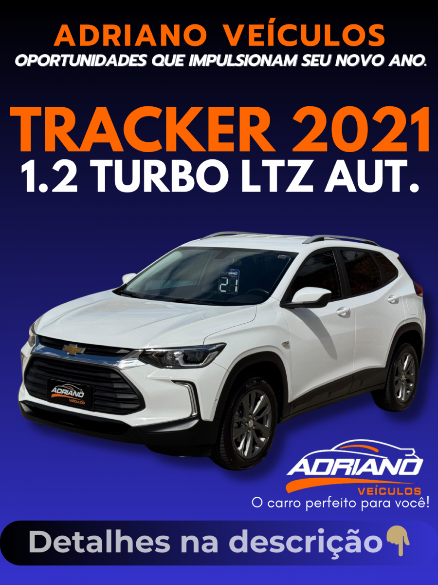 Quer um SUV que une design arrojado, tecnologia de ponta e um motor turbo eficiente? Sua busca termina aqui! Esta Chevrolet Tracker LTZ 2021 é a combinação perfeita de performance e sofisticação. Com seu motor 1.2 Turbo e câmbio automático, ela oferece uma condução ágil e prazerosa, ideal tanto para a cidade quanto para a estrada. Um dos SUVs mais completos e seguros da categoria! * Segurança Máxima: 6 Airbags (frontais, laterais e de cortina) e Freios ABS * Conectividade: Central Multimídia MyLink com Câmera de Ré, Wi-Fi Nativo e OnStar * Conforto e Praticidade: Chave de Presença (Easy Entry & Start), Ar-Condicionado e Piloto Automático (Controlador de Velocidade de Cruzeiro) * Design: Rodas de Liga Leve de 17 polegadas * Motor Turbo: Excelente performance com economia de combustível. Um SUV que entrega tudo: segurança, tecnologia, conforto e um visual que impressiona. Com a procedência e a qualidade que só a Adriano Veículos oferece. Não perca essa chance! A Tracker é um sucesso de vendas e unidades como esta são muito procuradas. Gostou? Entre em contato agora mesmo pelo nosso WhatsApp e agende um test-drive para se surpreender!