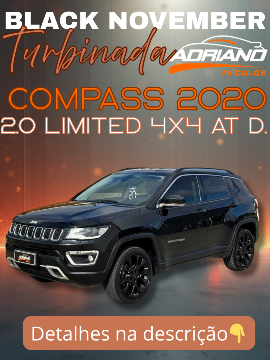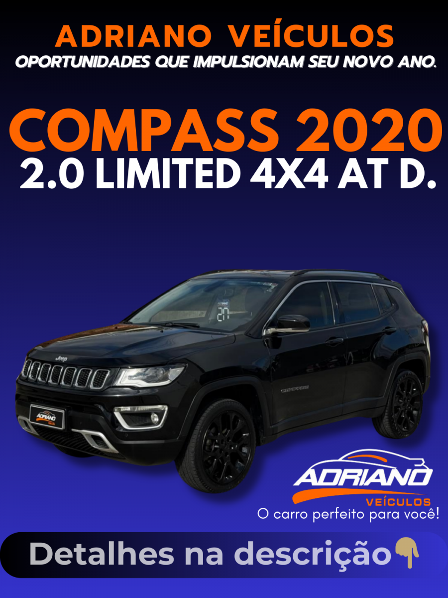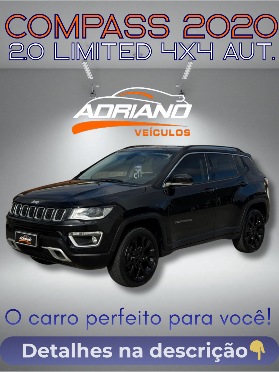 Procurando um SUV que ofereça o melhor em tecnologia, conforto e a segurança da tração 4x4 a diesel? Este Jeep Compass Limited 2020 é a resposta. Sua versão Limited, equipada com motor 2.0 Turbo Diesel e câmbio de 9 marchas, entrega uma performance robusta com excelente economia de combustível. O interior com acabamento premium e a tração 4x4 garantem conforto e segurança em qualquer terreno, seja na cidade ou em uma viagem de fim de semana. Principais Equipamentos: * Motor 2.0 Turbo Diesel com câmbio automático de 9 marchas. * Tração 4x4 Jeep Active Drive Low com seletor de terrenos (Selec-Terrain®). * Interior Premium: Bancos em couro e acabamento interno sofisticado. * Chave de Presença (Keyless Enter 'n Go) com partida por botão. * Central Multimídia Uconnect de 8.4" com Apple CarPlay e Android Auto. * Painel de Instrumentos com tela colorida de 7 polegadas. * Segurança: 6 Airbags (frontais, laterais e de cortina), Controle de Estabilidade (ESC) e Freios ABS. * Conforto: Ar-condicionado digital Dual-Zone e rodas de liga leve aro 19. Um SUV completo e muito bem equipado, que une o design marcante da Jeep com a versatilidade para o dia a dia e para novas aventuras. Uma oportunidade única com a procedência e a qualidade que você já conhece da Adriano Veículos. Ficou interessado? Entre em contato pelo nosso WhatsApp para saber mais e agendar uma visita. Venha conhecer de perto este Jeep Compass!