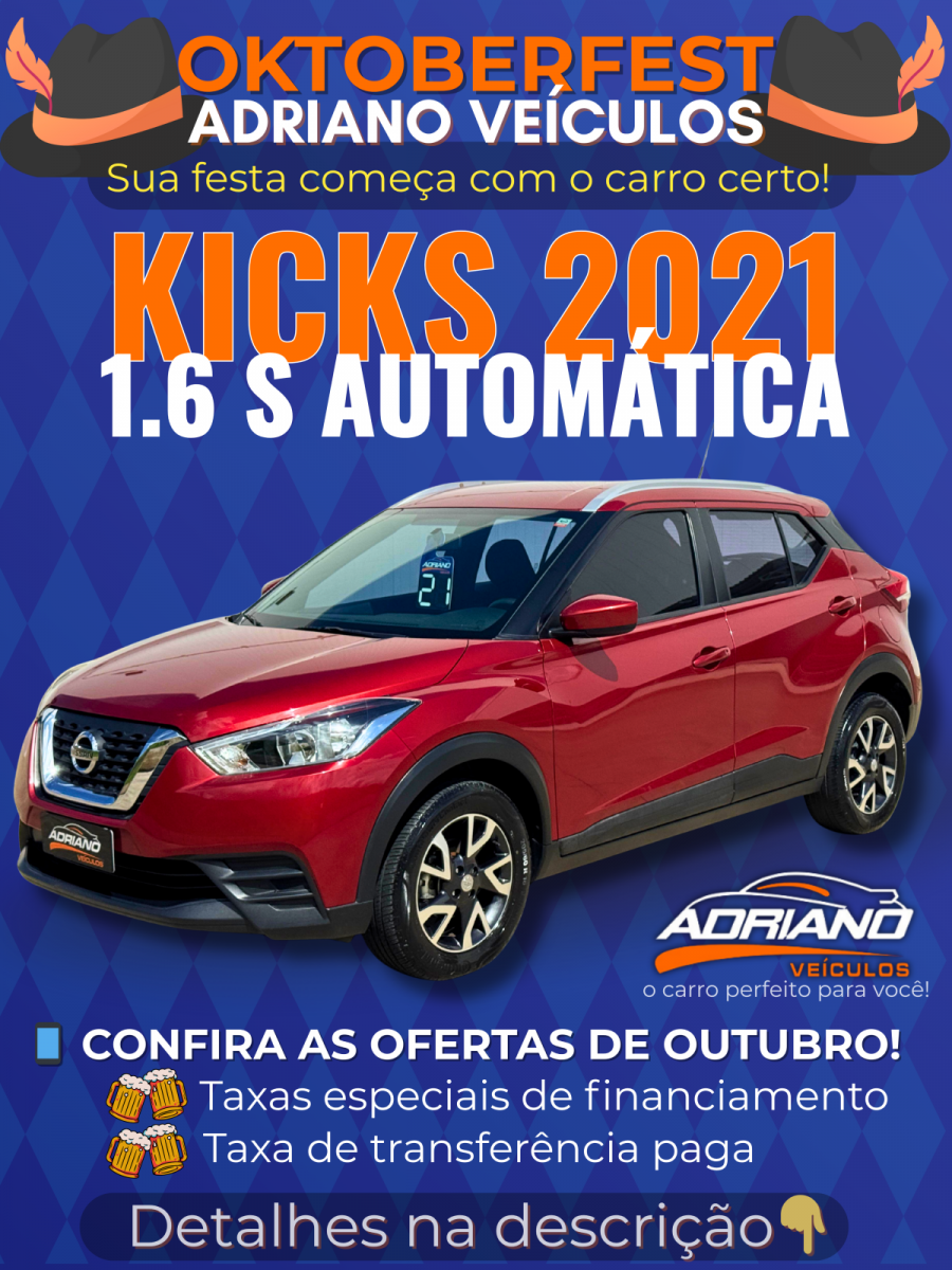 Nissan Kicks S 1.6 Automático 2021 – Completo, confortável e econômico!