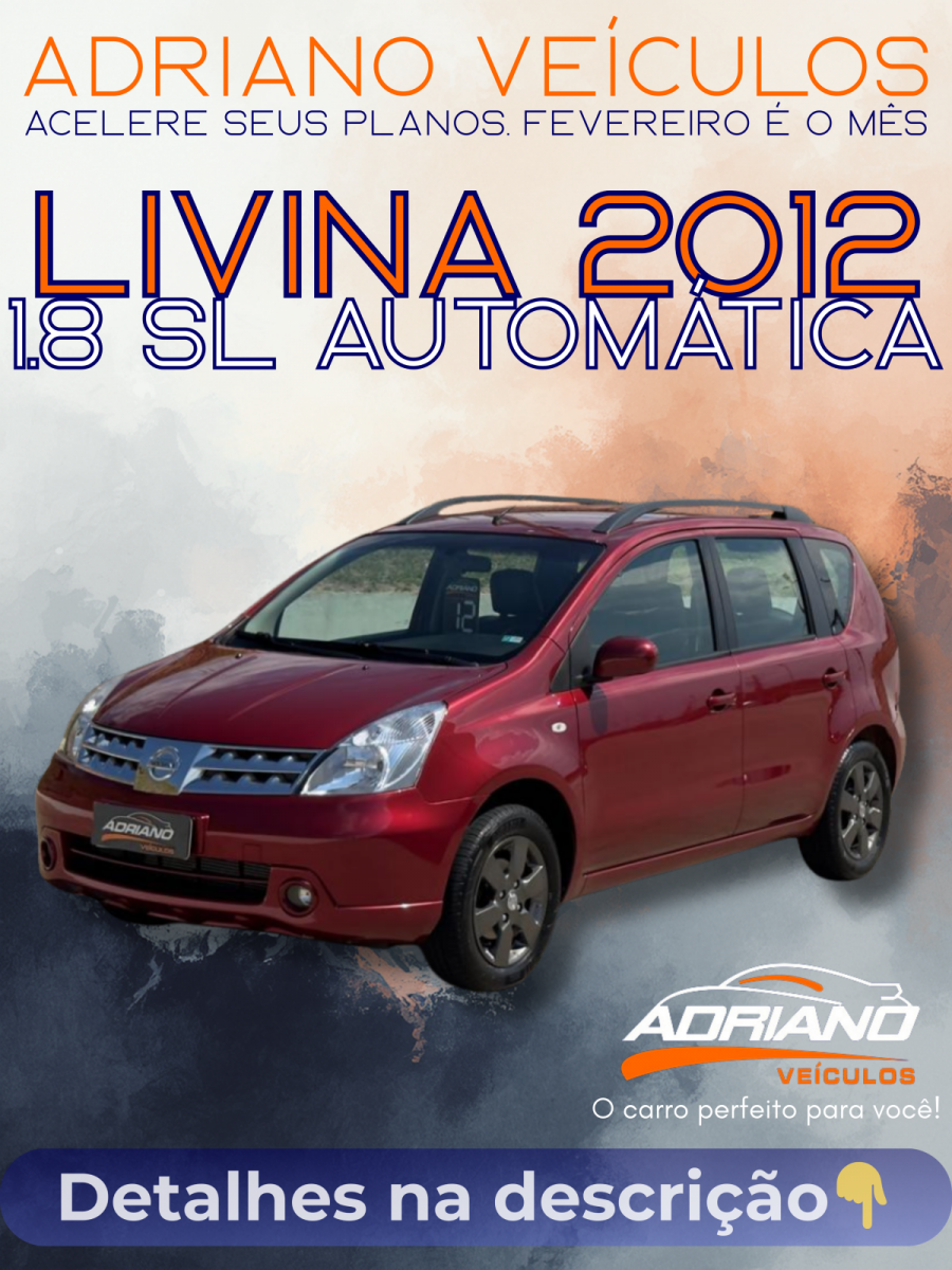 A Livina é conhecida pelo espaço interno e conforto inigualável para a família. Esta unidade é uma raridade absoluta: versão topo de linha SL, com apenas 74 mil km e histórico de única dona. Por que este carro é especial? * Única Dona + Baixa Km: A procedência e o estado de conservação que todo comprador procura. * Conforto Premium: Versão SL com Bancos em Couro, Ar-Condicionado Digital e Câmbio Automático. * Tecnologia: Chave presencial (I-Key) para abertura das portas e partida do motor. * Segurança: Freios ABS e Airbag Duplo. * Motor 1.8 16V: Potência de sobra para viajar com o carro cheio, sem perder o fôlego. Um veículo completo, espaçoso e com histórico impecável. Qualidade Adriano Veículos. Não deixe passar essa oportunidade única.