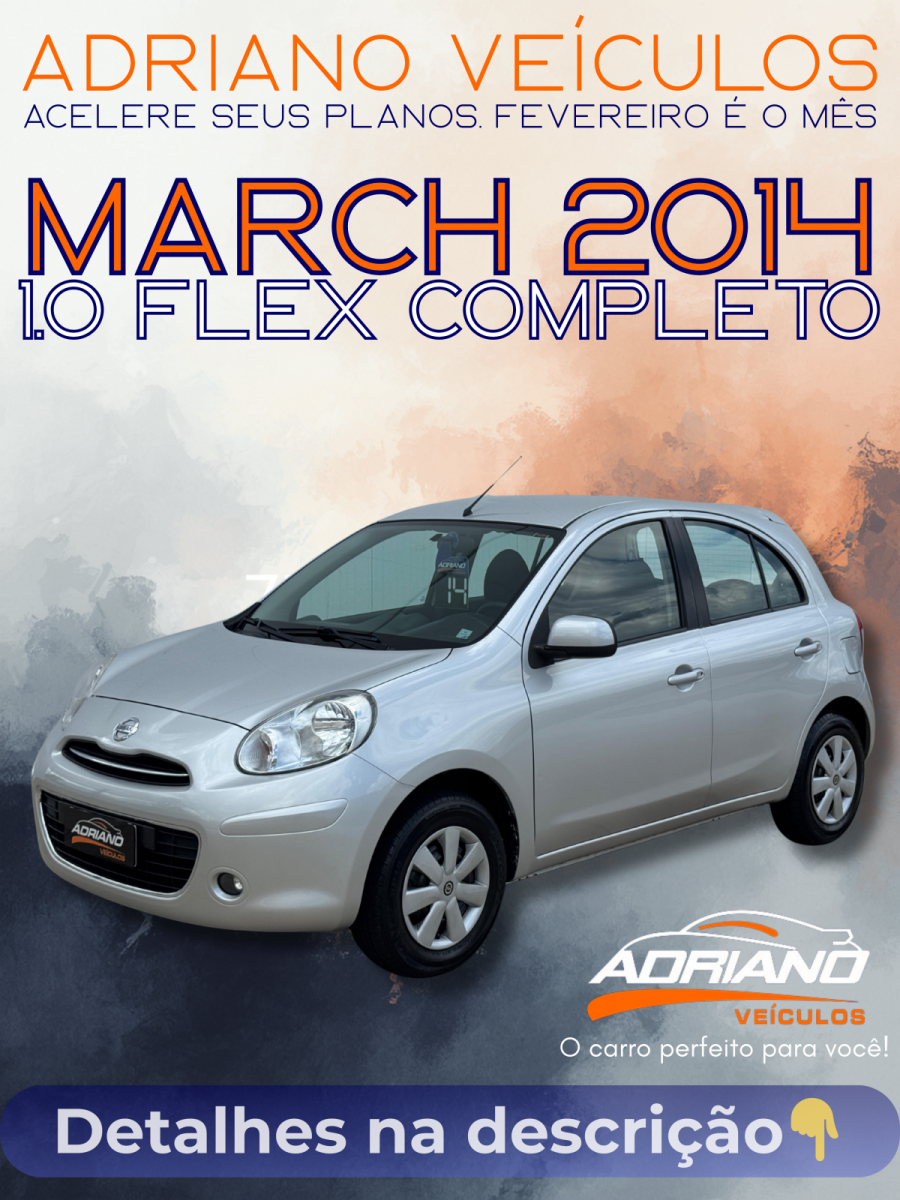 Procurando um carro ágil, confiável e super econômico para o dia a dia? Este Nissan March 2014 é a escolha perfeita, combinando baixo custo com a qualidade de um carro bem cuidado e de baixa quilometragem. Confira os destaques: * Apenas 90 mil km rodados! * Motor 1.0 Super Econômico * Completo de Fábrica * Airbag Duplo Um hatch tão econômico e bem cuidado, com a procedência Adriano Veículos, é a oportunidade que você estava esperando. Não deixe passar! Fale conosco agora e agende sua visita.