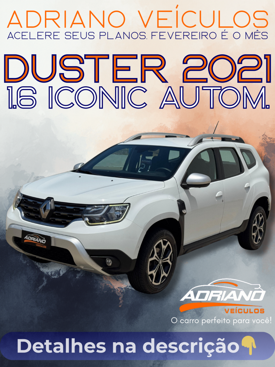 Uma oportunidade única de levar para casa o SUV mais robusto e desejado da categoria, na sua versão mais completa, por um preço que você não vai acreditar. Renault DUSTER Iconic 1.6 Automática 2021 - Por apenas R$ 85.900,00! Esta não é uma Duster qualquer. É a versão ICONIC, a mais equipada e sofisticada de todas! Confira o nível de acabamento e tecnologia que espera por você: * Bancos em Couro: Sofisticação, conforto e facilidade de limpeza no seu dia a dia. * Tecnologia de Ponta: Chave de presença para partida e acesso sem tirar a chave do bolso e sistema START/STOP para mais economia de combustível. * Completíssima: Multimídia com câmera de ré, ar-condicionado, direção elétrica, e muito mais. * Design Exclusivo: Rodas de liga leve que dão um toque de esportividade e elegância. * Segurança Garantida: Airbags duplos e freios ABS para a proteção de toda a família. Isso mesmo, você não leu errado! É uma DUSTER ICONIC 2021, super completa, por um valor ABAIXO DA TABELA FIPE. Essa condição especial é por tempo limitado! Corra para a loja e não perca essa chance. Fale com a gente agora mesmo!