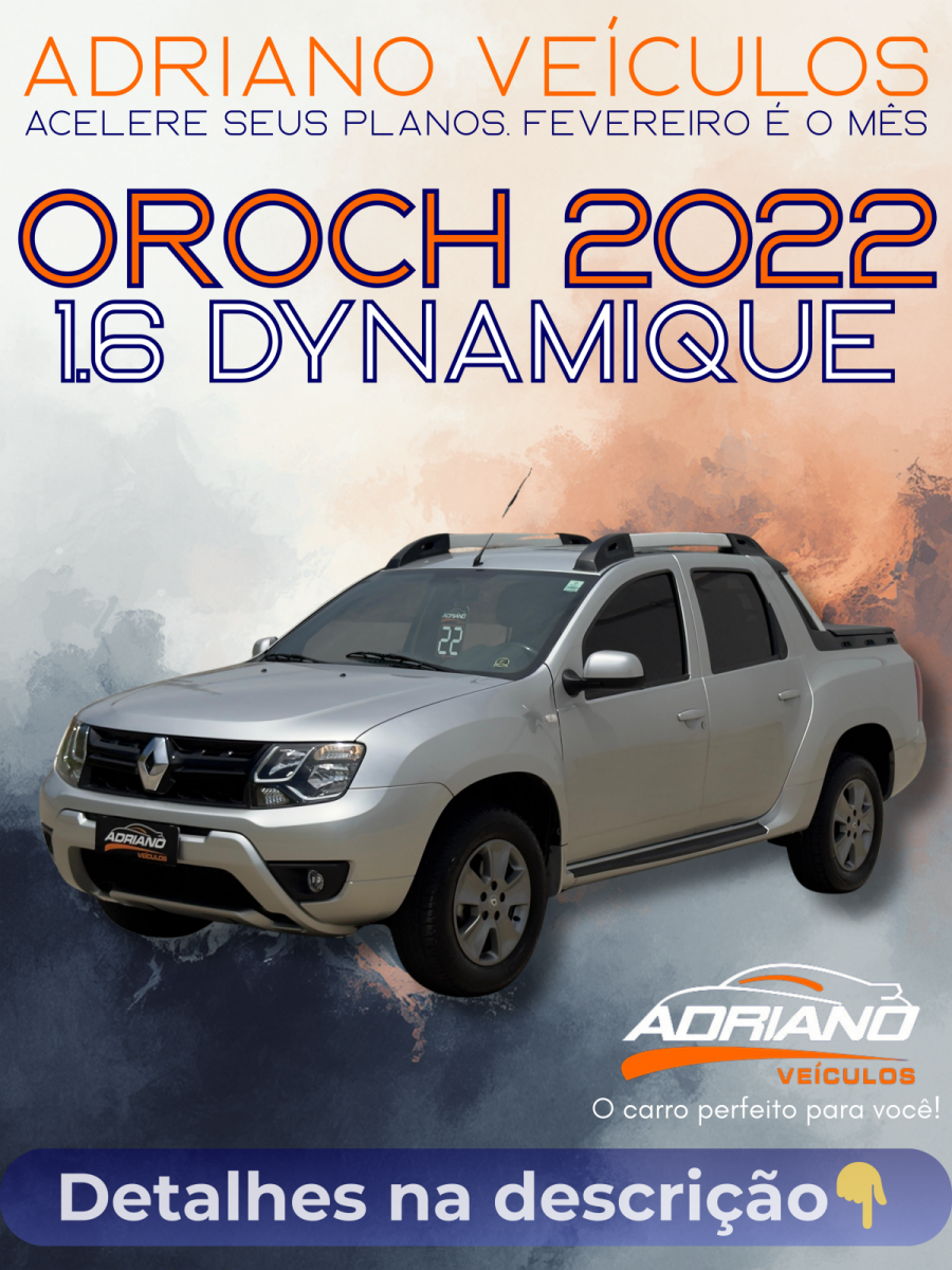 A Duster Oroch inaugurou um segmento por um motivo: ela entrega o espaço interno e o conforto de suspensão de um SUV, somado à praticidade da caçamba. Na versão Dynamique, você leva o pacote mais completo de equipamentos. Por que escolher esta Oroch? * Versão Dynamique: Acabamento superior e lista de equipamentos mais generosa, incluindo Rodas de Liga Leve que valorizam o visual. * Conectividade: Central Multimídia integrada, essencial para o dia a dia. * Praticidade: Sensores de estacionamento traseiros, facilitando as manobras com a caçamba. * Espaço Real: Cabine dupla com espaço de verdade para 5 ocupantes, diferente das picapes compactas tradicionais. * Segurança: Freios ABS e Airbag Duplo. Um veículo robusto, pronto para o trabalho ou para o lazer da família, unindo o melhor de dois mundos. Com a garantia de procedência da Adriano Veículos. Venha conhecer a picape que cabe na sua garagem e na sua vida.